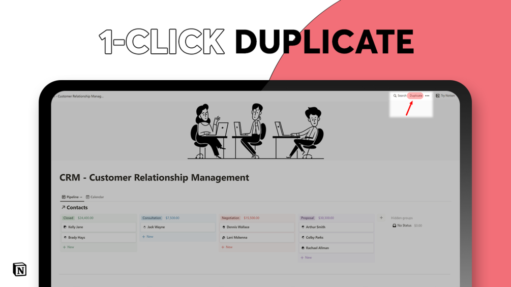 Get a fully organized & customizable CRM system in Notion.